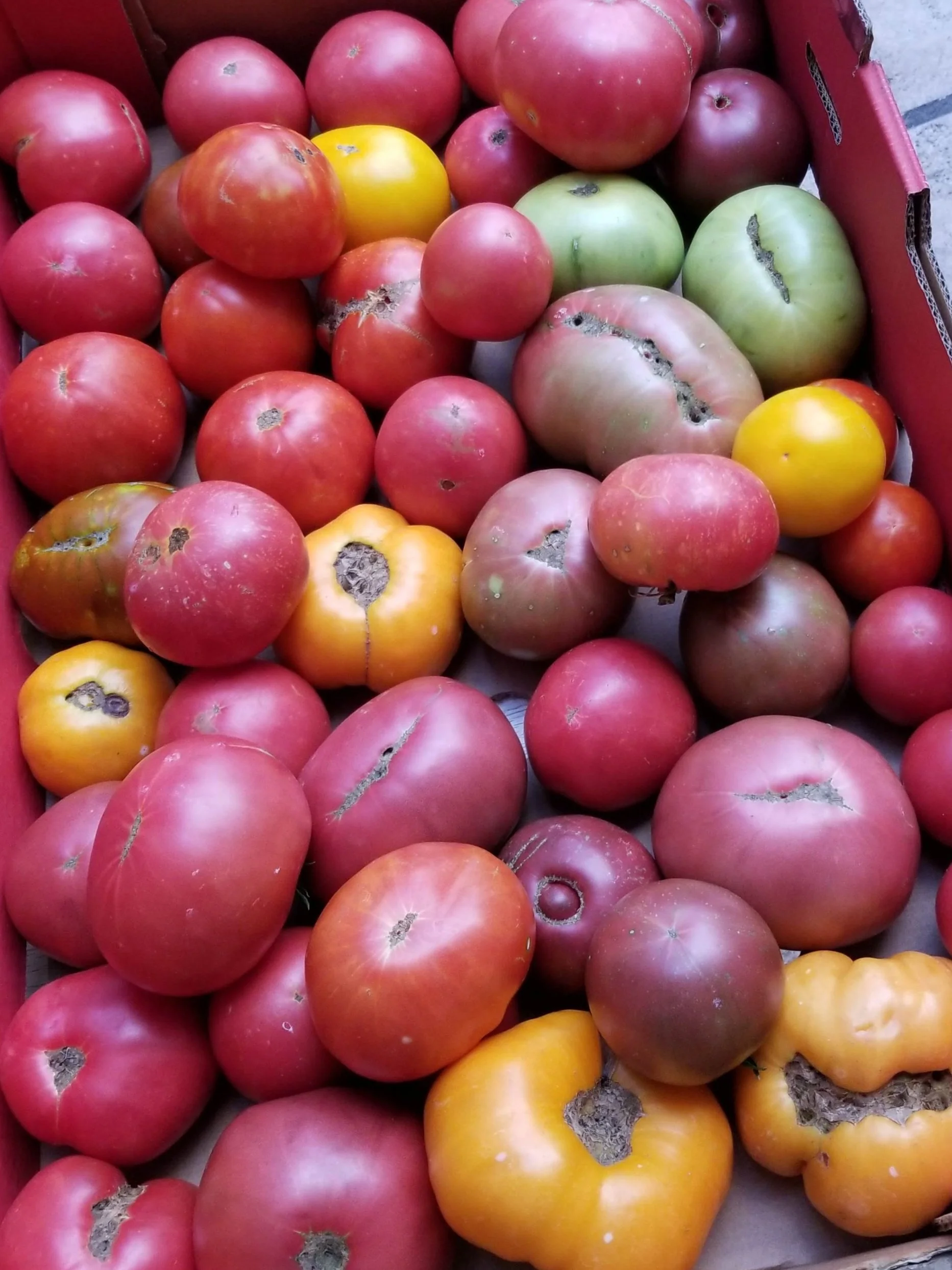 “Heirloom” refers to thousands of varieties of tomatoes that have been carefully selected over time for quality and taste, and genetically stabilized through generations by farmers and home gardeners. The genetic diversity of heirlooms finds its way into today’s common hybrid tomato varieties.